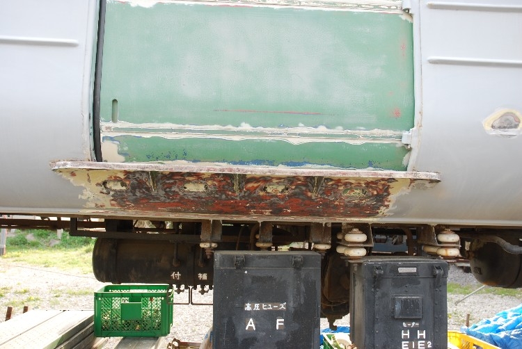 乗務員ドアは塗装の傷みがひどく、また裾アール部も変形していてボロボロの状態でした。。